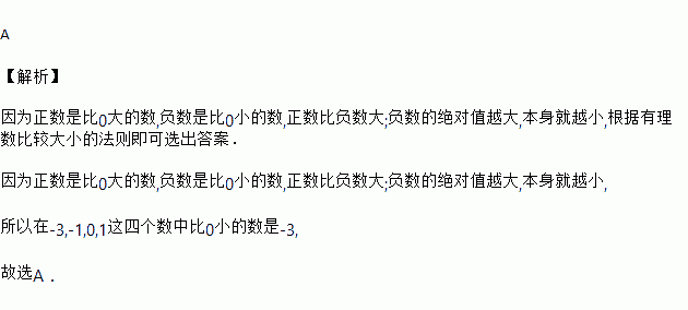 在﹣3,﹣1,0,1四个数中,比﹣2小的数是( )