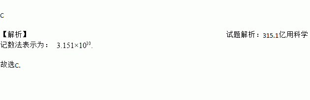 根据安徽省统计局最新统计,2017年11月份,全省财政收入315.1亿元,增长5.4%,315.1亿用科学记数法表示正确的是( )