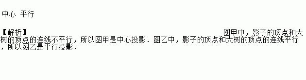 在图中,图甲、乙是两棵小树在同一时刻的影子,那么图甲是___投影,图乙是____投影.