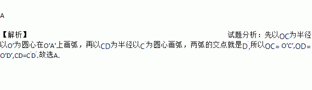 A ¡¾½âÎö¡¿ÊÔÌâ·ÖÎö£ºÏÈÒÔOCΪ°ë¾¶ÒÔO¡äΪԲÐÄÔÚO¡äA¡äÉÏ»»¡£¬ÔÙÒÔCDΪ°ë¾¶ÒÔC¡¯ÎªÔ²ÐÄ»»¡£¬Á½»¡µÄ½»µã¾ÍÊÇD¡¯,ËùÒÔOC= O¡äC¡ä,OD= O¡äD¡ä,CD=C¡¯D¡¯.¹ÊÑ¡A.