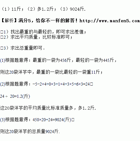 (1)这20袋洋芋中,最重的一袋比最轻的一袋重几斤?
