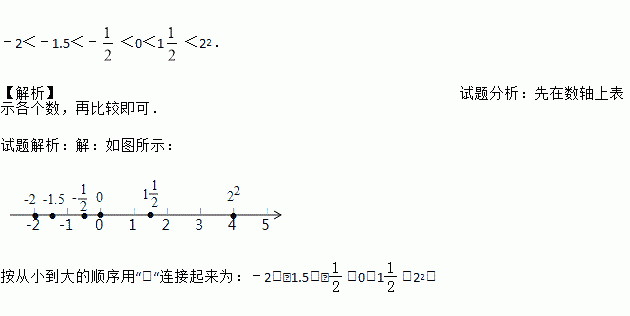 在数轴上表示数:﹣2,22,﹣