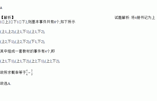 书架上有两套同样的教材,每套分上、下两册,在这四册教材中随机抽取两册,恰好组成一套教材的概率是( )