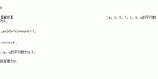 若数据m,2,5,7,1,4,n的平均数为4,则m,n的平均数为( )