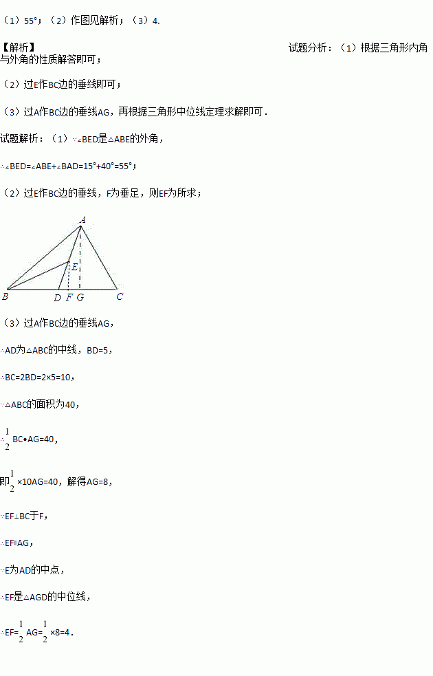 (3)若△ABC的面积为40,BD=5,则△BDE 中BD边上的高为多少?