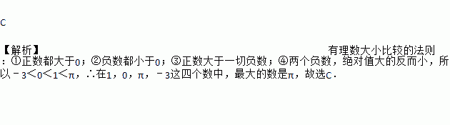 在1,0,π,﹣3这四个数中,最大的数是( )