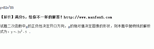 形状与抛物线y=2x2﹣3x+1的图象形状相同,但开口方向不同,顶点坐标是(0,﹣5)的抛物线的关系式为________.