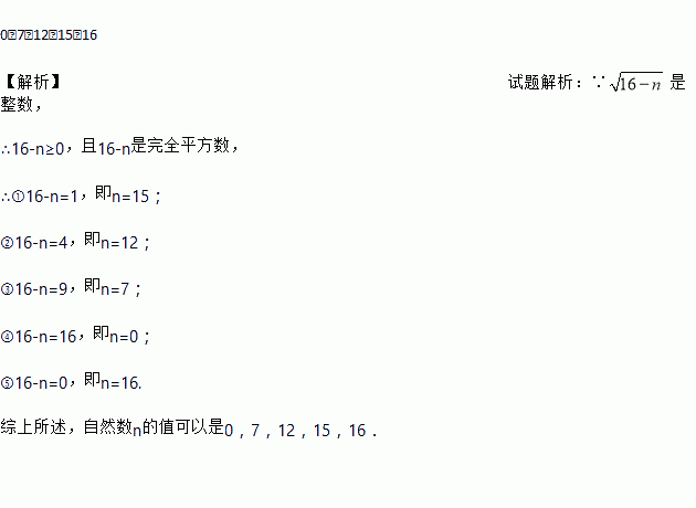 已知是整数,则自然数n所有可能的值为__________.