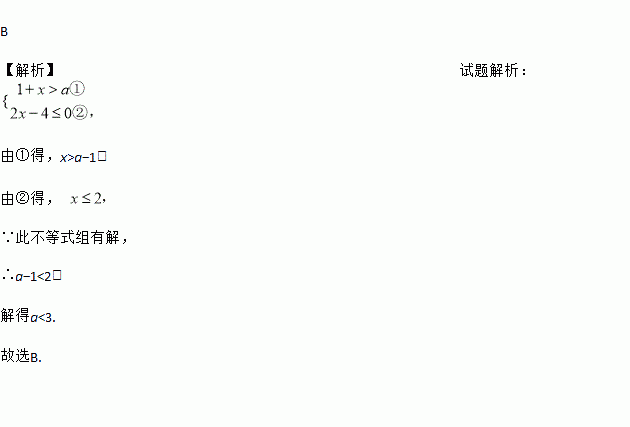 A. a≤3 B. a<3 C. a<2 D. a≤2