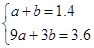 试题分析:(1)因为当x=1时,y=1.4;当x=3时,y=3.6,代入![]()