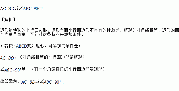 如图,在平行四边形ABCD中,对角线AC与BD相交于点O,若再添加一个条件,就可得平行四边形ABCD是矩形,则你添加的条件是_____.