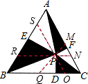解:如图,过P点作正△ABC的三边的平行线,则△MPN,△OPQ,△RSP都是正三角形,四边形ASPM,四边形NCDP,四边形PQBR是平行四边形,