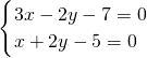∴|3x-2y-7|+(x+2y-5)2=0,