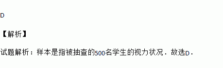 要了解某市九年级学生的视力状况,从中抽查了500名学生的视力状况,那么样本是指( )