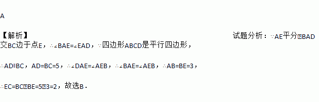如图,在平行四边形ABCD中,AD=5,AB=3,AE平分∠BAD交BC边于点E,则线段BE,EC的长度分别为( )