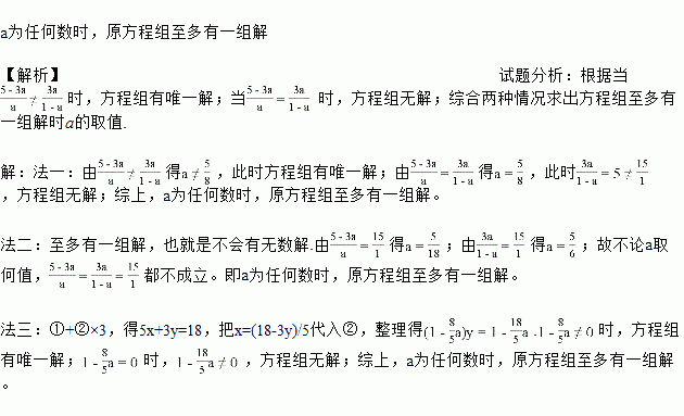 若a为常数,且方程组至多有一组解,则a的取值范围是__________