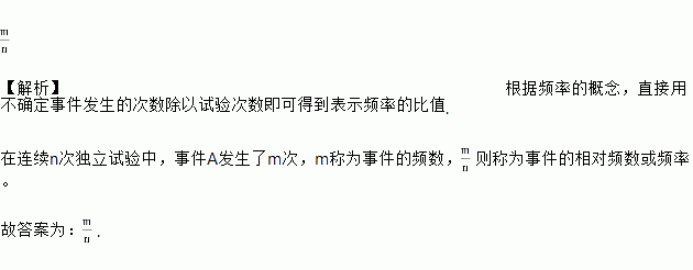 在n次重复试验中,不确定事件A发生了m次,比值____称为事件A发生的频率.