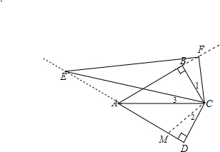 分析:在DE上截取DM=BF,由∠ABC=∠ADC=90°,对角线AC平分∠BAD,根据角平分线性质得到CB=CD,利用等角的余角相等得到∠ACB=∠ACD,然后根据“HL”得到Rt△CBF≌Rt△CDM,则∠1=∠2,CF=CM,由∠ECF=