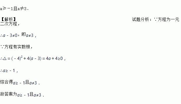 关于的一元二次方程有实数根,则a满足_______________.