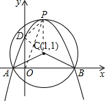 (3)由圆与抛物线的对称性可知抛物线的顶点P的坐标为(1,3),求出抛物线的解析式;