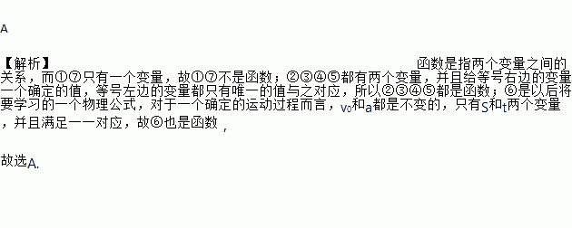 at2;⑦2y+y2=0,其中不是函数关系的是( )