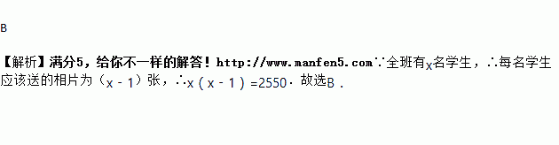 某初中毕业班的每一个同学都将自己的相片向全班其他同学各送一张表示留念,全班共送了2550张相片,如果全班有x名学生,根据题意,列出方程为( )