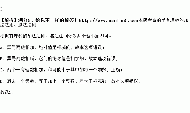 (C)两个有理数相加,和可能小于其中的每一个加数