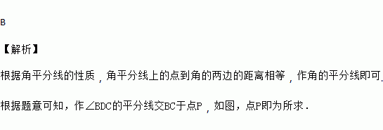 如图,在钝角△ABC中,过钝角顶点B作BD⊥BC交AC于点D.用尺规作图法在BC边上找一点P,使得点P到AC的距离等于BP的长,下列作法正确的是( )