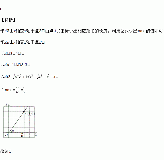 如图,在平面直角坐标系中,点A的坐标为(3,4),那么sinα的值是( )