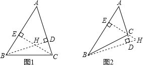解:(1)如图1,若△ABC是锐角三角形,