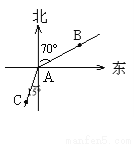 如图,甲从A点出发向北偏东70°方向走到点B,乙从点A出发向南偏西15°方向走到点C,则∠BAC的度数是 ( )