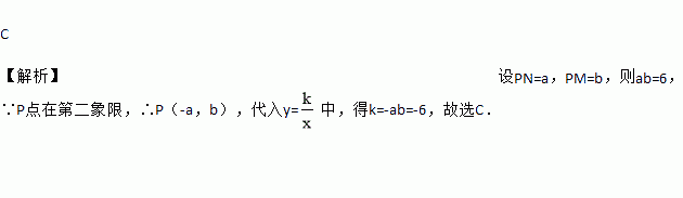 C 【解析】设PN=a,PM=b,则ab=6,∵P点在第二象限,∴P(-a,b),代入y=中,得k=-ab=-6,故选C.