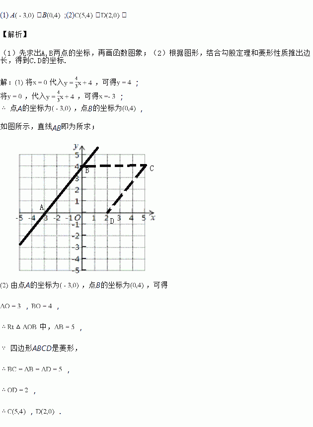 若点C在第一象限,点D在x轴的正半轴上,且四边形ABCD是菱形,直接写出C,D两点的坐标.![]()