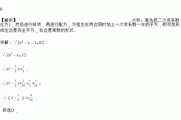 用配方法解方程2x2﹣x﹣1=0,变形结果正确的是( )