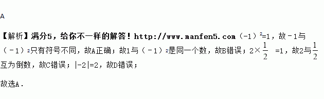 A. ﹣1与(﹣1)2 B. (﹣1)2与1 C. 2与 D. 2与|﹣2|