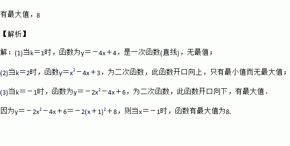 当k分别取-1,1,2时,函数y=(k-1)x2-4x+5-k都有最大值吗?请写出你的判断,并说明理由;若有,请求出最大值.