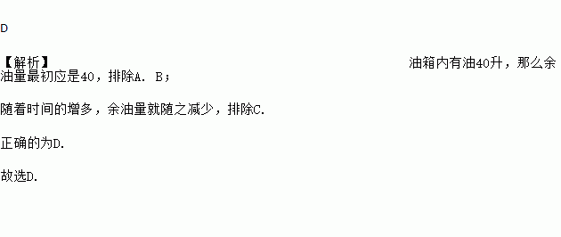 汽车开始行驶时,油箱内有油40升,如果每小时耗油5升,则油箱内余油量Q(升)与行驶时间t(时)的关系用图象表示应为图中的是( )