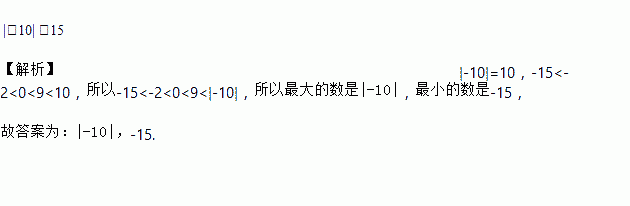 |﹣10| ﹣15 【解析】|-10|=10,-15<-2<0<9<10,所以-15<-2<0<9<|-10|,所以最大的数是|-10|,最小的数是-15, 故答案为:|-10|,-15.