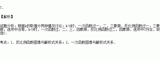 一次函数和反比例函数在同一直角坐标系中的图象大致是( ).