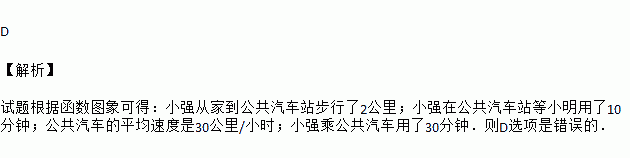 A. 小强从家到公共汽车在步行了2公里 B. 小强在公共汽车站等小明用了10分钟