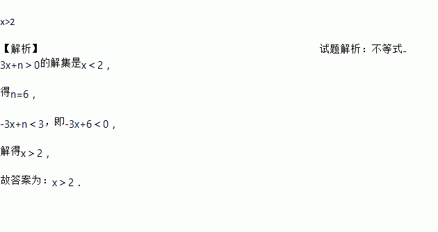 若关于x的不等式-3x+n>0的解集是x<2,则关于x的不等式-3x+n<0的解集是________