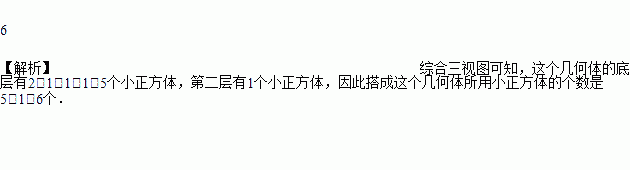 由若干棱长相等的小正方体构成的几何体的主视图、左视图、俯视图如图所示,则构成这个几何体的小正方体有________个.