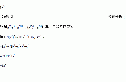 计算:3(x2)3•x3﹣(x3)3+(﹣x)2•x9÷x2