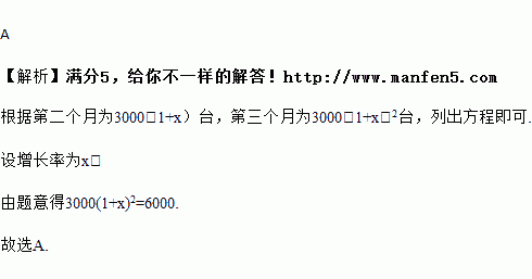 2017年5月,20国青年评选出了中国的“新四大发明”:高铁、支付宝、共享单车和网购.某共享单车公司计划2018年连续3个月对合肥投放新型共享单车,计划第一个月投放3000台,第3个月投放6000台,每月按相同的增长率投放,设增长率为x,则可列方程 ( )