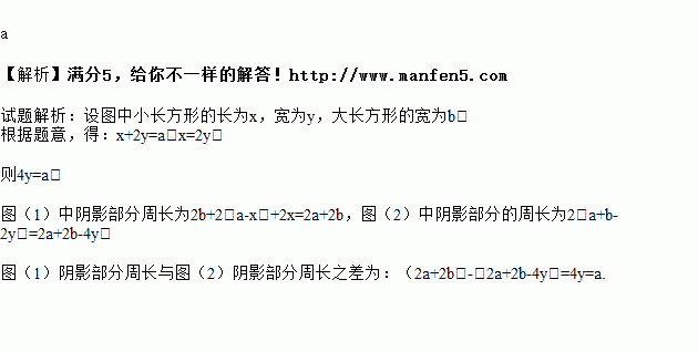 已知两个完全相同的大长方形,长为,各放入四个完全一样的白色小长方形后,得到图①、图②,那么,图①中阴影部分的周长与图②中阴影部分的周长的差是_____(用含a的代数式表示).