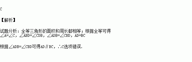 A.△ABD和△CDB的面积相等 B.△ABD和△CDB的周长相等