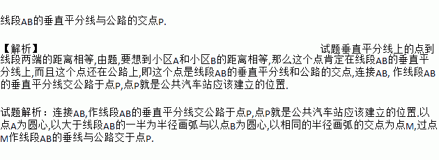 如图,某地由于居民增多,要在公路边增加一个公共汽车站,A,B是路边两个新建小区,这个公共汽车站建在什么位置,能使两个小区到车站的路程一样长?