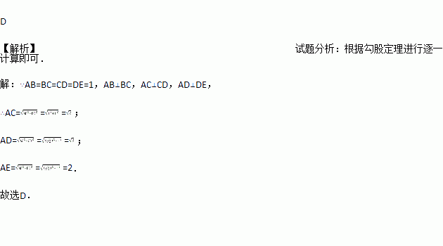 如图所示,AB=BC=CD=DE=1,AB⊥BC,AC⊥CD,AD⊥DE,则AE=( )