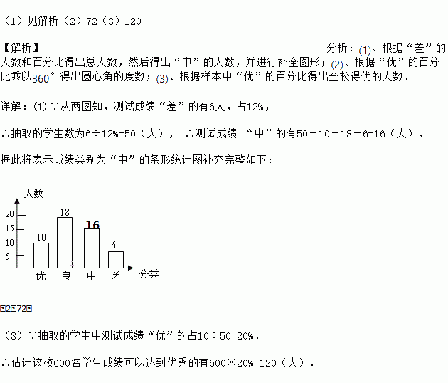 (3)学校九年级共有600人参加这次数学考试,估计该校有多少名学生成绩可以达到优.