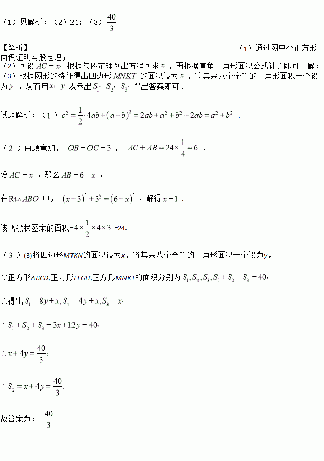 (3)如图③,将八个全等的直角三角形紧密地拼接,记图中正方形